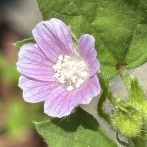 🌱野に咲く一日花🌱 花の直径15mmほど 小さな淡桃色の花をつける ④花後には10~20個の分果から なる果実をつけ(円盤形) 腎臓形の種子を内包する 錦葵(にしきあおい) アオイ科