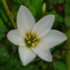 玉簾(タマスダレ)/ゼフィランサス ヒガンバナ科タマスダレ属の多年草。明治時代初期の1870年頃に観賞用として渡来したブラジル原産の帰化植物。人家周辺でしばしば逸出、野生化している。地下に直径2~3㎝のラッキョウに似た形の鱗茎から、長さ40㎝ほどの扁平で線形の葉を、秋から冬にかけて叢生する。花期は5~10月。高さ30㎝ほどの花茎をだし、直径6㎝ほどの白色の6弁の花を上向きに単生する。花は日光が十分当たると開き、夕方日が陰ると閉じ、翌日日が昇ると開く。これを数日間繰り返す。鱗茎はよく分球して群背逸する。果実は蒴果。楕円体を3つくっつけたような形。成熟すると裂開して種子を落とす。種子は果実に7~20個入る。種子はやや扁平な楕円形や卵球形で、片面が丸く反対面には鈍い稜がある。長さは6~7㎜。 タマスダレの名前は、葉が並んでいる様子を簾に見立て、花の白さを玉に例えた。同属で花色が淡紅色のサフランモドキ(江戸時代末期に渡来した帰化植物)などとまとめてゼフィランサスという属名で呼ぶことがある。 全体に有毒成分を含み、葉をニラと、鱗茎をノビルと誤食して中毒事故が起きる。症状は激しい吐き気と嘔吐、下痢による脱水性ショック。嘔吐、下痢が続くことで身体から水分が失われて、胃腸炎、呼吸不全、痙攣などを起こして死に至る。アルカロイドのリコリンはヒガンバナ科の植物の多くに含まれており、致死毒になりうるが、中毒死することが少ない。それは、催吐性があるため、たとえ口にしても胃の中のものを吐き出してしまうために、吸収される毒成分の量は少なく、大事に至ることは少ないからである。 出典『日本帰化植物写真図鑑』『帰化&外来植物見分け方マニュアル 950種』『都会の草花図鑑』『草木の種子と果実』『薬草の呟き』