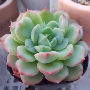 「ライムアンドチリ×セトーサ」 Lime and chile × Setosa ベンケイソウ科 エケベリア属 2018.12.9. 購入 実生多肉ちゃま ちょいもけのピンクエッジがヤバイ!😆