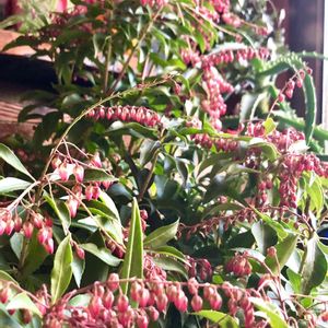 鉢植えは違いますな( 灬˙罒˙灬 ) 玄関外の風避けつきの場所に置いていたアセビの鉢植え!花のツボミも膨らんで〜 赤白ツートン姿のお花が鈴なり🥰 よって*(^o^)/* 玄関内に鉢移動❣️ めんごいのぉ~( ´罒`)