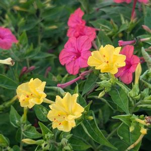 花散歩でオシロイバナとモリモリシオンに出会いました🩷💛😄 ビタミンカラーで元気もらいました〜👍