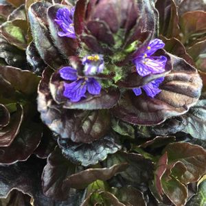 アジュガ チョコレートチップ シソ科の植物 華やかな花がたくさんある中で ひっそりと紫色の花を咲かせていて 逆に目にとまりました💜