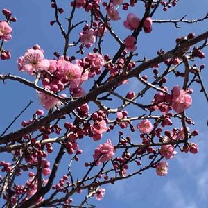 紅梅(昨日撮影) 友人宅へ向かう🚲💨途中に見かけ、思わず止まって撮りました🌸 両手万歳で見上げ、必死でピントを合わせ何枚も撮り直しましたが、これが限界でした😅💦