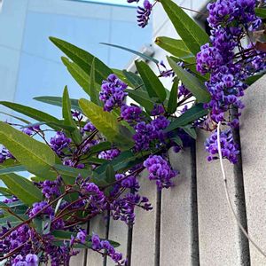 通りすがりのマンション 塀の上から溢れるように咲いている、これはハーデンベルギア?思わず🤳 綺麗な花ですね✨✨