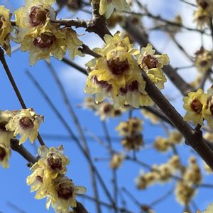 前回見かけたロウバイ もう流石に枯れてるかなと思ったらまだ結構残ってた! 今回は晴れていたので 青空にロウバイが映える😊 でも終わりがけだからか 香りがほとんどしなかった😅残念 3枚目の写真→ロウバイの実⁈ 初めて見ました🫢 ちょっと虫っぽい😅