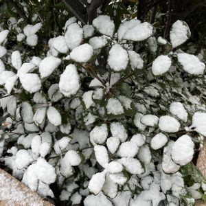 昨日の濃尾平野にもうっすら積雪。 ①通りすがりの街路樹。 横なぐりの雪でこちら側だけ積もってた。 ②カレンデュラの花にも雪が😅 ③マジョラムにも。 ④⑤ヤグルマギクにも❄️