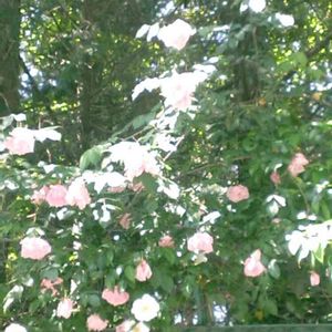 通りすがりの道… フェンスに寄り添いながら咲くバラです。 結構長い距離に植わっていました。