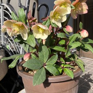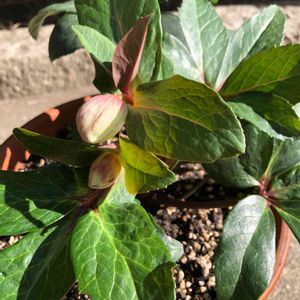 2023/12/29 クリスマスローズ スノーダンス 一番花が終わったくらいの株をセールで購入、次の花が咲き始めました。👍️