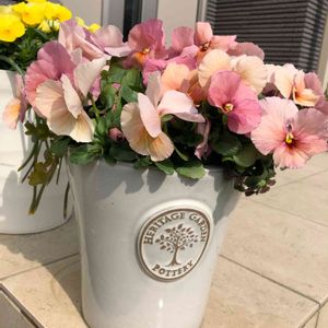 種から育てたパンジー みやびキューティーアプリコットさん。こんな感じの薄い色があったり、ボルドーに近い赤があったり、色幅があって楽しませてくれます😊 たた、寄せ植えにしようと思うと、開花するまで、ドキドキで、コーディネート難しいですね