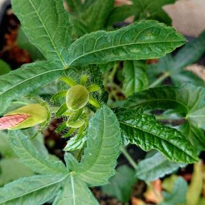 アベルモスクス(アカバナワタ) 春に種まきしてた子がやっとで蕾をつけました😭 開花期が8月までなんだけど‥ すでに間に合ってません😭 咲いてね~😭