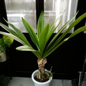 さ、寒い❄️ 寒いのに熱帯っぽい植物が仲間入りー✨ かなりの大きさ、かなりの広がりですっ❗ 斑入りで、ここまで大株な子は見たことないよー