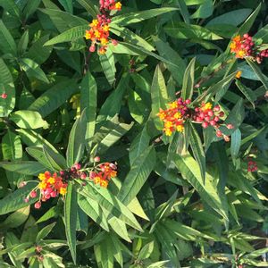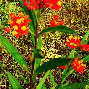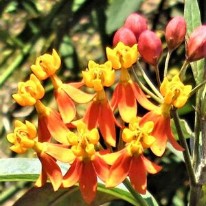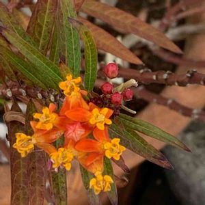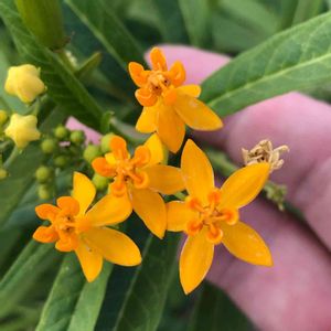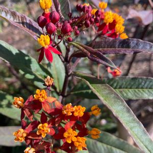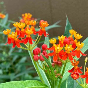 赤と黄色のトウワタ(アスクレピアス)の花、可愛いです💕