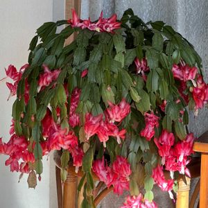 クリスマスカクタス🎄 デンマークカクタス? シャコバサボテン?? 今年は咲いてくれました🎅 一昨年蕾付きでお迎えして 立派なお花を咲かせてくれましたが その後1年間は無😑 お花後に剪定して肥料あげたけど 蕾上がってきませんでした 今年は、少ないながら11月くらいから蕾上がってきてくれて今に至ります👍 お迎え時よりボリュームダウンしてて🥲 植え替えしてません 土が少ない感じがするので 春になったら土だけ入れ替えてみよう