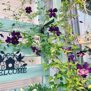 クレマチス マダムジュリアンコレボン 完全西向き、南から西日までしか太陽☀️が当たらない場所ですが爆咲してます🤣