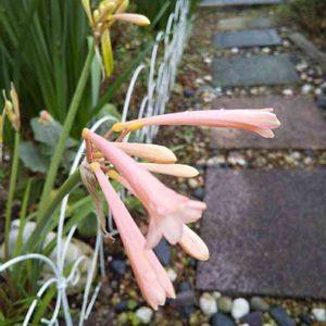 今朝は冷え込んで庭の水道は凍って水が出ませんでした。 先日、花だって気付いた名前の解らない植物! 霜?に当たって垂れ下がっています😅 大丈夫なんだろうか?! 名前、キルタンサス(笛吹水仙)の様です😆