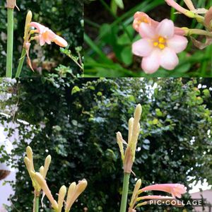 庭で初めて見るお花🌼 🔍するとキルタンサス 植えた記憶ないのだど 冬の庭を飾ってくれてありがとう💕🎶