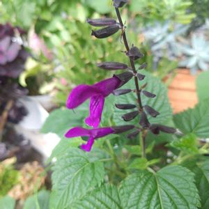 おはようございます ヾ(´ω`=´ω`)ノ こっちは「スーパーサルビアロックンロール ディープパープル(長ぇ…)」です。 サルビアガラニチカと共に青系統はまだ開花していません。