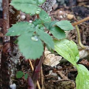 玄関先の庭の薔薇🌹 新芽が根元から出てましたヾ(゜0゜*)ノ 本木は殺虫剤かけてますが これ!貝殻虫かなー………なかなか手強い💦