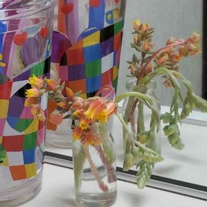 おはようございます 動き易い季節到来ですね💦 今朝のpic エケベリアの花💐 あっという間に花芽が伸びてきて開花🌼 1ヶ月前は何事もなかったのに… 暖かくなってきたら一気に出てきたぁ🤗 何種類だったかなぁ🤔 確か15種類くらいのエケの花芽を✂️チョンパしたと思う 本当は最後まで咲かせて満開を見たかったけど…苗が弱ってしまうので早々に✂️ でも結構咲いてるのもあり😅 花瓶に挿しててもちゃんと満開が🌼見れるので良しとしましょう♡ まだまだこれからドンドン花芽が出てくるので👀見つけたら✂️ こうやって沢山の花を纏めると中々綺麗ですよね〜✿゚❀.(*´▽`*)❀.゚✿ 暫く💐買わずに済みます🤣 😮💨仕事だぁ〜 通常勤務体制 2年間どれだけだらけてたか… ある意味有り難かったかも😖 エケ❁❀✿見て癒され頑張ります٩( ᐖ )۶
