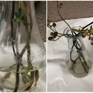 2021.07.04 切り取った花芽を水が入った瓶に挿して放置してたら、芽が出ていた。 水中でも出ている。