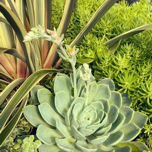 エケベリア ブルーエルフの花が咲きました ほかのエケベリアも花芽が出ているので楽しみです🎵💕