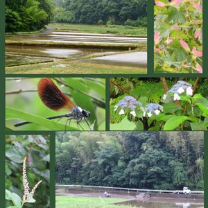 2019.6.14 山あいの田んぼで 雨の中 田植えが始まっている カエルを見ながら田んぼと山の間を歩く♪♪〜