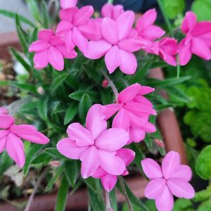 快晴☀️ 我が家のアッツザクラ💖 咲きだしました✨ 大きめな浅鉢に植えっぱなしです🙂 毎年、花数が多くなっています😄