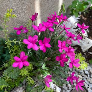 アッツザクラ 今年も満開を迎えました😀 毎年植替えはしませんが、キッチリ咲いてくれる頼もしいレッドです😀 追伸、アリッサム! 2021年秋、挿し芽からのアリッサムを植えてから1年半! 地際付近は木質化し新芽が出ることは無いが、控え目な切り戻しを繰り返していたら奇麗にそろってきました😀 今シーズンの挿し芽からの苗が沢山あるが当分の間、出番がなさそうです😀