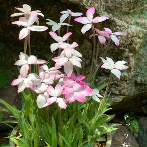 アッツザクラ🌸 🌿だけの時お迎えして、 咲くまで数ヶ月待ち、 ようやく開花𓆸 ちょっと面白い形のお花で、 とても綺麗𓍯