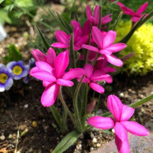アッツザクラ。4月25日撮影📸。 縁石の隙間に咲いていました💦⇒草取り中に発見❕❕分からなかったぁ~。
