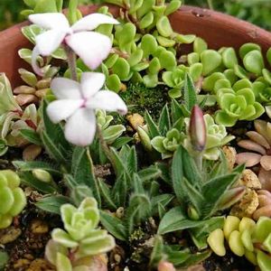こんばんは😊 今日は小春日和〜🎵久しぶりに籠もりしてみました 💕❀✿*゚‘゚・.。.:* ♡アツザクラ♡ひなそう ♡ロータスクレティクス〜♪ 可愛い春のお花達です🤗〜☘️