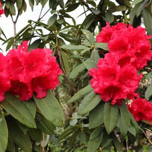 林業試験場で鮮やかな真っ赤に萌えた石楠花にお目にかかれました。 園芸品種でしょうか?疲れも一気に吹き飛ぶ見事さ❗ 2022/4/16 鶴来 林業試験場樹木公園にて