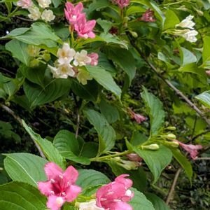 オオベニウツギ❣️ 犬のお散歩の途中いつも、この白とピンクの混在可愛いなーと思って見ています。
