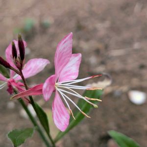 遂に😁 G.S.を始めるきっかけのガウラちゃんを 小さな畑の真ん中に植えました💕。 どうぞ、根づいてくれますように🥹☺️ ハクチョウゲは元気にモサモサになりました😁。ウツギも元気に4m位に伸びました😄。カタバミは植木鉢の角に、ちょこっと🫣。ヒルザキツキミソウは畑の角の方に毎年、少しづつ増えてます。夫が草と一緒にむしるので、少しづつです😂。