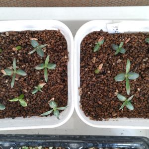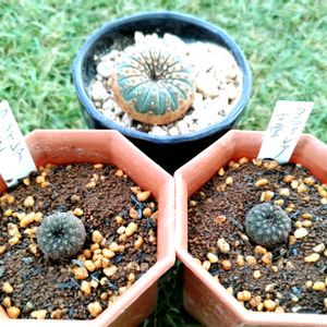 実生記録 アフリカ亀甲竜 播種から2ヶ月 4️⃣🐢かと思ったら、いつの間にか5️⃣🐢になってた🎵 気づかなかったよ😅