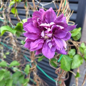 こんにちは クレマチス パテンス系 紫宸殿です。 八重咲きで濃い紫色の大輪のお花です。