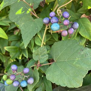 おはようございます(* ᴗ ᴗ)⁾⁾ 散歩道で見つけました き緑色から紫色のきれいなグラデーションのノブドウと、 2枚目は厚葉君が代欄でしょうか 咲き始めたばかりののお花です