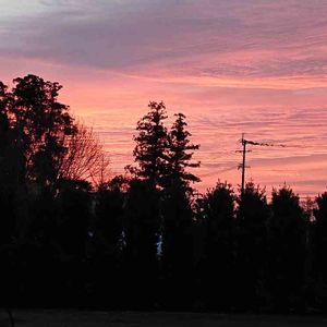 💐夕焼けをバックにお宮の二本杉