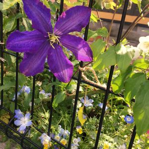 ラプソディとスブニールドラマルメゾンのコラボ みえないけど、下の方にも他のクレマチス咲いてます