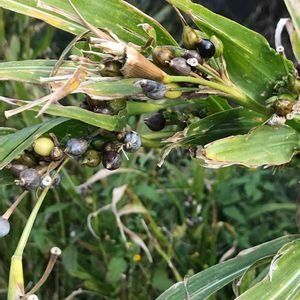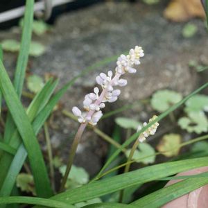 実家の庭から持ってきて植えた藪蘭、ようやく花をつけました。日陰で健気な感じです