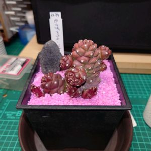 道の駅で見つけました。 モナデニウムリチェイ 運搬中に倒してしまって、急遽植替えすることになりました。根っこの状態も悪くは無かったです。用土は軽石(ひゅうが土)を使用して水はけを良くするように施しました。今は紅葉(夏になると緑に変化するかも)しているので、仕上げ砂に、ピンクのカラーゼオライト(水槽用)を使用しました。また、セリアの溶岩石も付け足したら、趣のあるいい感じに仕上がったと思います。
