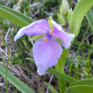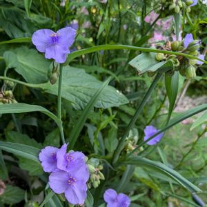 【オオムラサキツユクサかな?】 ムラサキツユクサかもしれない… 萼に毛があるのがオオムラサキツユクサとあったけど よくわかりません たくさんの蕾も魅力的 全部咲いたら華やかになるんだろうな💜 きれいなムラサキとシベのフサフサが癒しでした