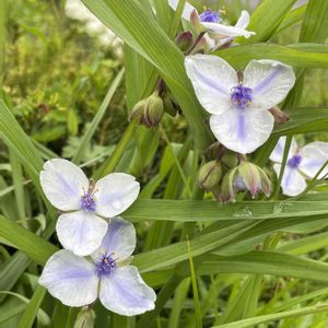 オオムラサキツユクサ(ツユクサ科) 明治時代に鑑賞用として入ってきた北アメリカ原産の多年草 花柄や外花被片に毛が密生するのをオオムラサキツユクサという 高さもツユクサより高いというわけではない ①②2023.6/14 毛が密生しているといえるのかしら? ③④2024.6/18 一年後ですが同じ場所に出ていました 今日、真理さんの投稿を拝見し お蔵入りしていたのを見てみました う〜ん⁉️白花のオオムラサキツユクサでいいような気がしますが? いかがでしょうか❓ 違っていたら教えて下さい🙏