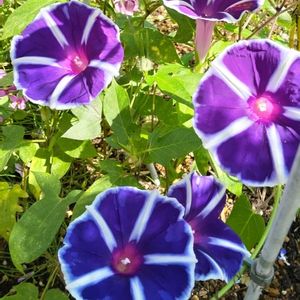 朝顔 光の加減で色が違いますが 下の色が本当の色です💙☘️ オオムラサキツユクサ カット後咲いてます💜
