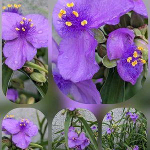 こんにちは〜☀️ 今日は気温が上がって… 30℃近いです😍 1⃣オオムラサキツユクサ 出先で咲いてました🤍💜 2⃣3⃣4⃣カンパニュラ💜 友人の事務所の花壇で咲き始めたカンパニュラ💜可愛いです!