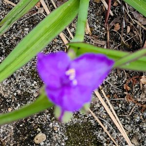こんばんは😃🌃 ど根性でオオムラサキツユクサの花が咲いてます✨