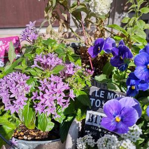 おはようございます☀️ 春、夏から活躍してくれた ホイップマカロン🎶 ペンタス・ラベンダーカラー🎶 近くで、ブルービオラとアリッサムが尊敬の眼差しで寄り添ってます😉🎶 ホイップマカロンは葉っぱが枯れてきましたが、まだまだお花をたくさん咲かせてくれてます👍 寒くなってきても、一生懸命花を咲かせてくれる姿は素晴らしいの一言です👏 ペンタスは良い意味で全く変わらず💪💪やっぱり凄いっすペンタス✨