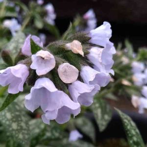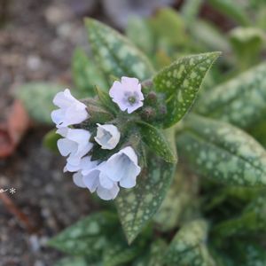 プルモナリアはブルーエンサインに続いて、二品種目。東京ですが、ブルーエンサインは難なく夏越しできたので、追加でおぎはら植物園で昨秋に購入しました。葉の模様と薄青 色の花が綺麗です。