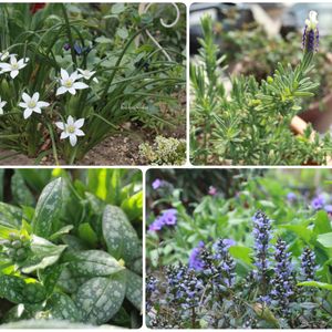 開いてる時間が短か過ぎるよ オオアマナ✨ まだ2個しか咲いてないけど フレンチラベンダー✨ まだまだ咲きます プルモナリア オパール✨ 可愛い地味紫 アジュガ チョコレートチップ✨