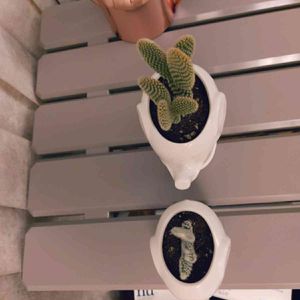右が植え替え直後で 左が約2ヶ月後くらいかな。 なんか棘が伸びたような? 可愛いなぁ🌵